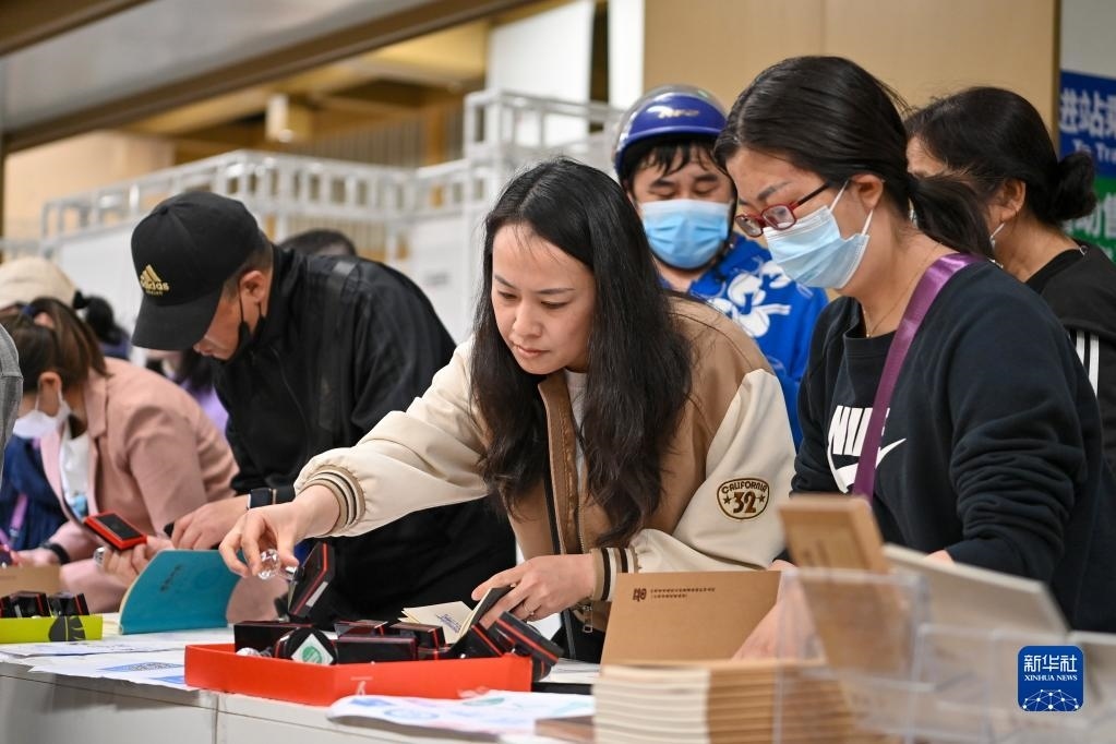 5月9日,在太原地鐵2號線大南門站,市民在第三屆“印記太原”文化創(chuàng)意設(shè)計(jì)展上體驗(yàn)古城游集章活動。