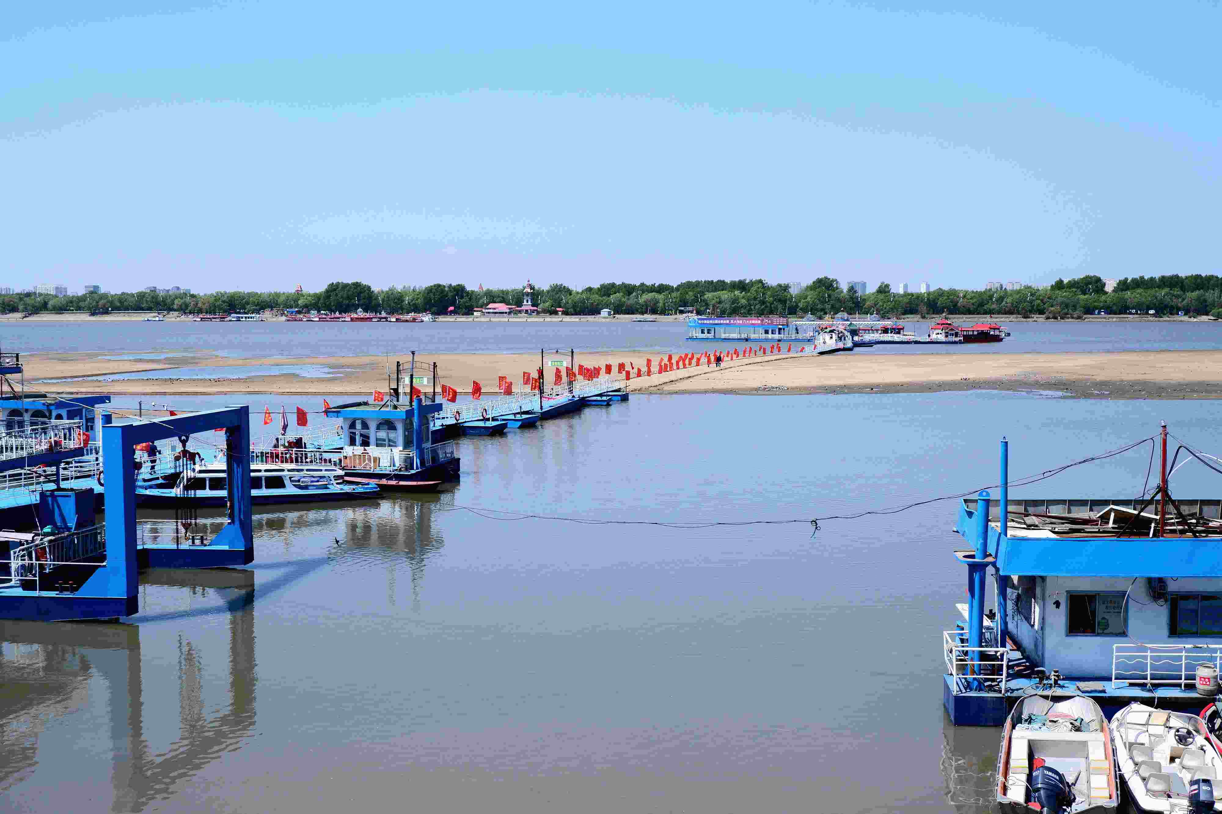 近日,受上游來水量減少和無明顯降水天氣影響,松花江哈爾濱段水位持續(xù)走低,江渚大面積裸露,往返太陽島風景區(qū)輪渡暫停通航。 吳胡荼 攝