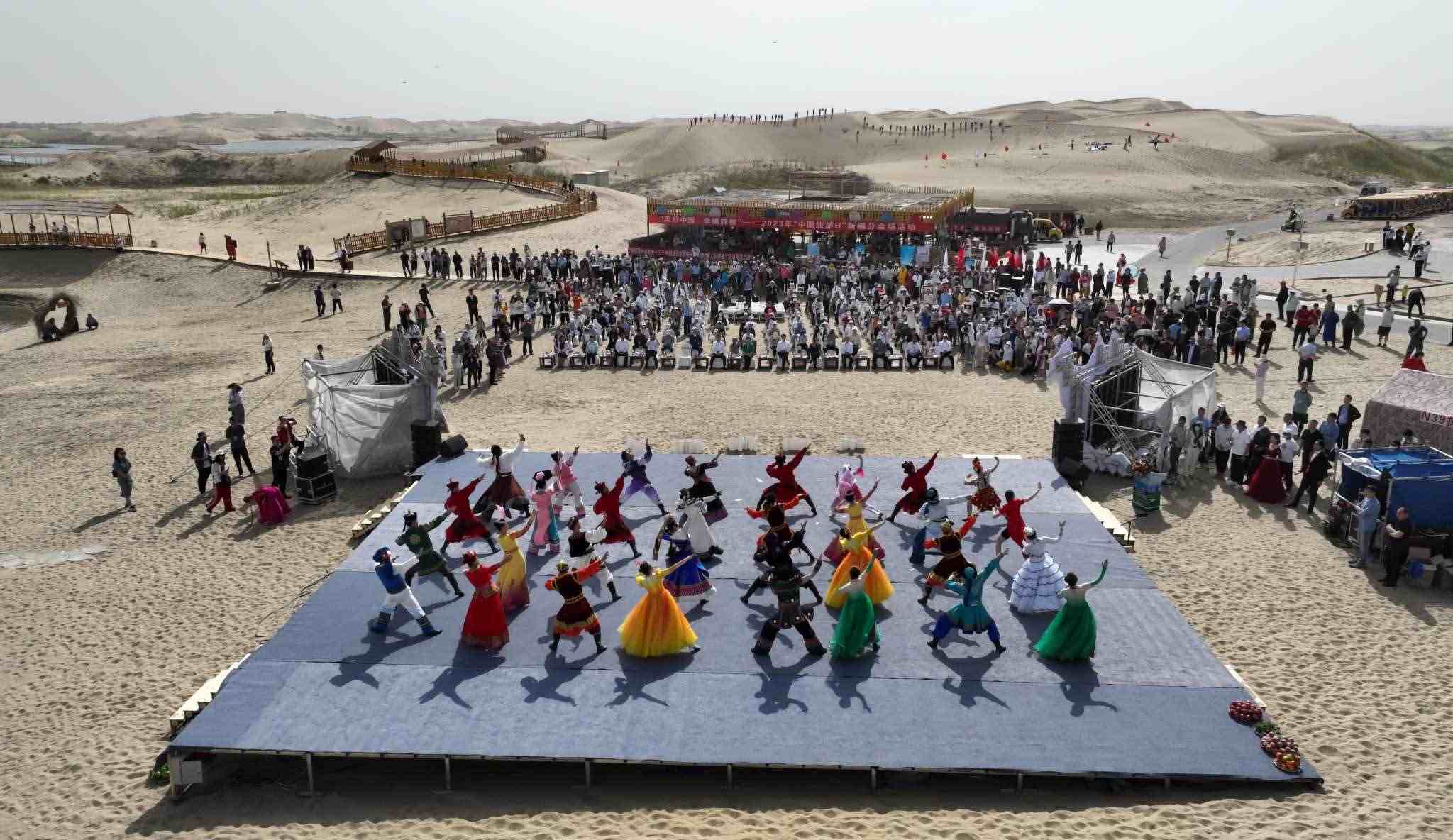 2023年5月19日是第13個(gè)“中國旅游日”。隨著當(dāng)天啟動(dòng)的新疆維吾爾自治區(qū)2023年“5·19中國旅游日”各項(xiàng)旅游促銷活動(dòng),尉犁縣羅布人村寨一片歡騰,迎來了入夏首個(gè)旅游高峰。視覺中國