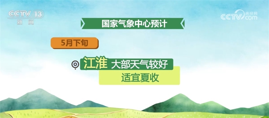 國(guó)家氣象中心預(yù)計(jì),5月下旬,北方冬麥區(qū)大部分時(shí)段以晴好天氣為主,墑情適宜,利于冬小麥灌漿成熟;江漢、江南及四川盆地、貴州等地有較強(qiáng)降雨,夏收作業(yè)將短暫受阻;江淮大部天氣較好,適宜夏收。