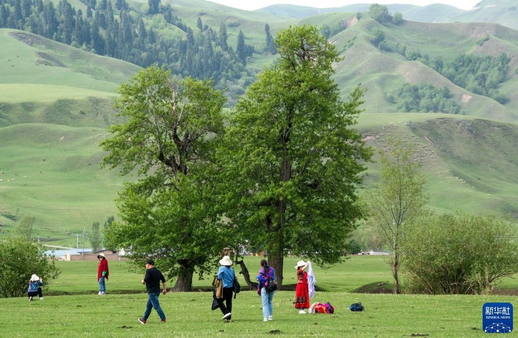 5月20日,游客在位于新疆新源縣的那拉提旅游風(fēng)景區(qū)觀光。   新華社記者 郝昭 攝