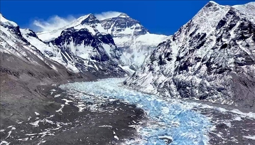 珠峰是“冰川家族聚集地”,廣泛分布著各類(lèi)冰川。在珠峰北坡,純凈藍(lán)天下,絨布冰川于群峰間蜿蜒而下,晶瑩的冰塔錯(cuò)落有致,壯麗奇幻。