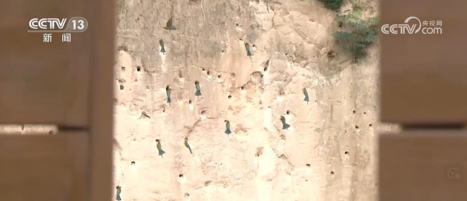 眼前,這些看上去很像是泥巴墻的建筑,其實(shí)是人工建造的候鳥巢穴。根據(jù)栗喉蜂虎的生活習(xí)慣,保護(hù)區(qū)工作人員專門在它們回來之前就對(duì)懸壁進(jìn)行修整,讓這些美麗的小鳥更方便安家。