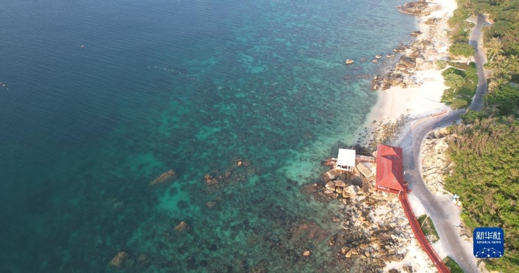 這是5月18日拍攝的海南三亞蜈支洲島海域海洋牧場(chǎng)(無人機(jī)照片)。