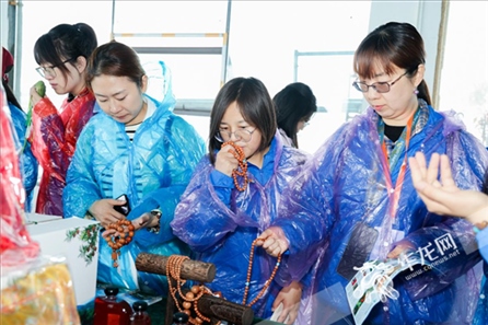 網(wǎng)媒記者們了解紅豆杉珠串。華龍網(wǎng)-新重慶客戶端 黃歡 攝