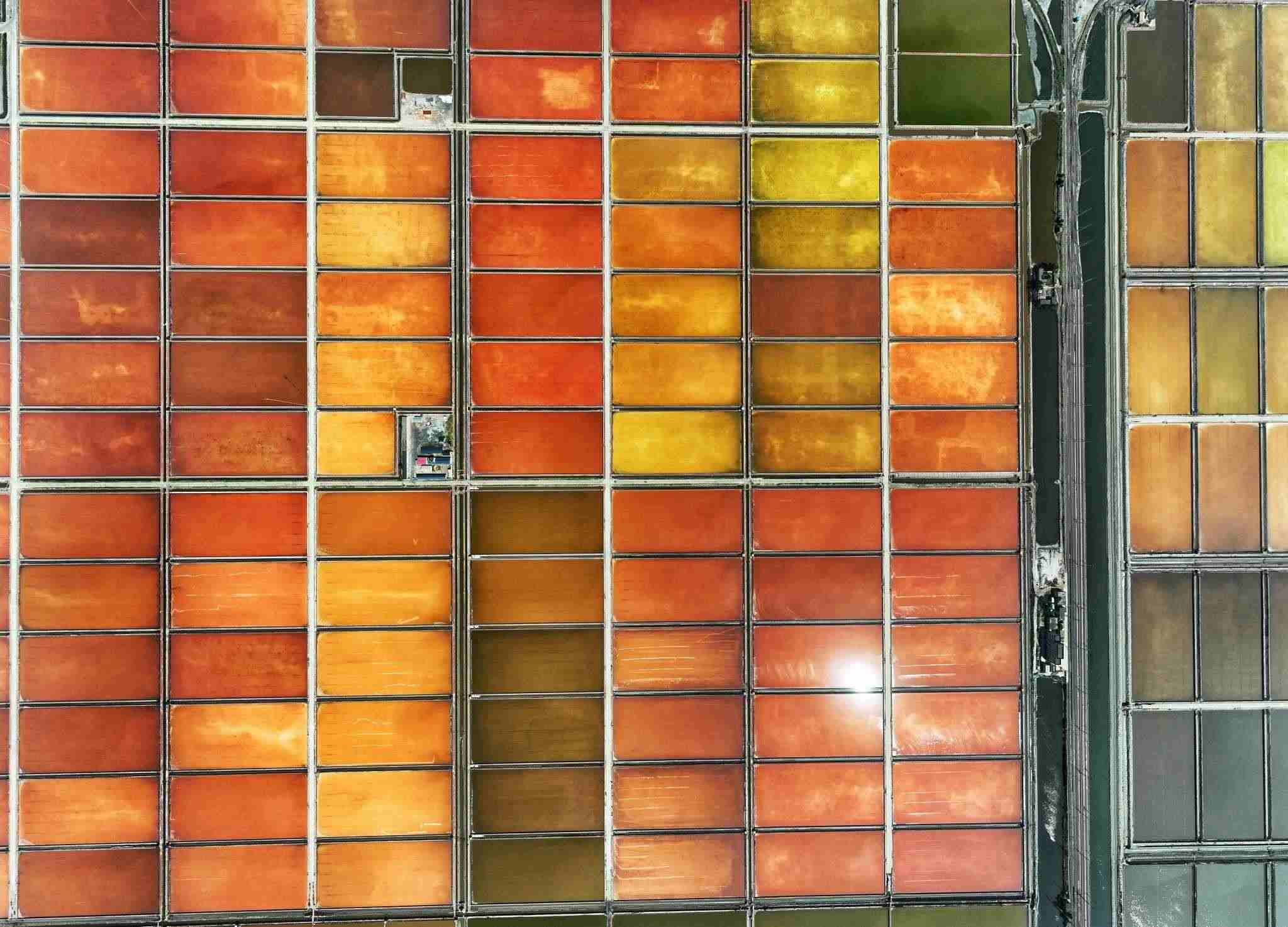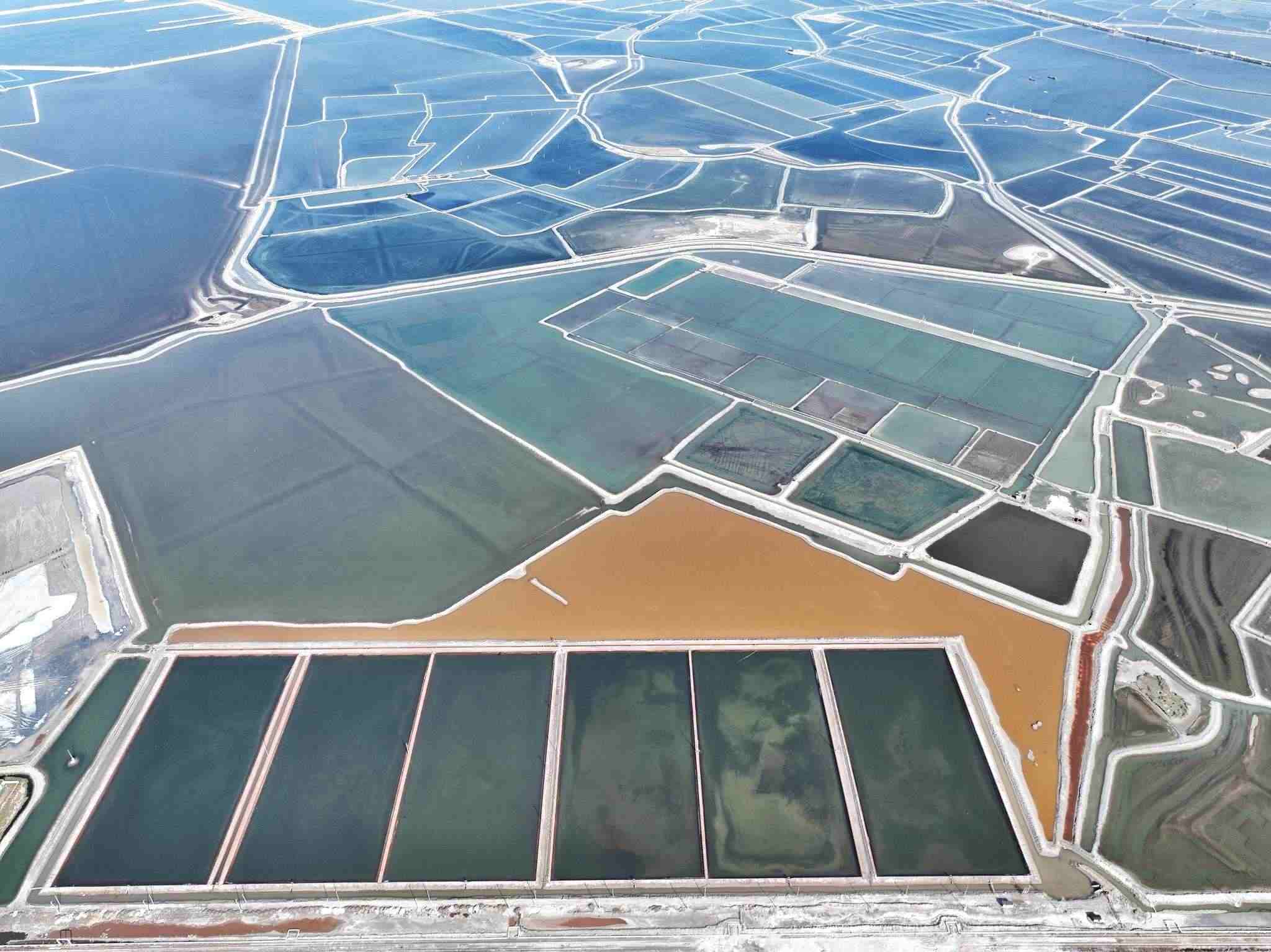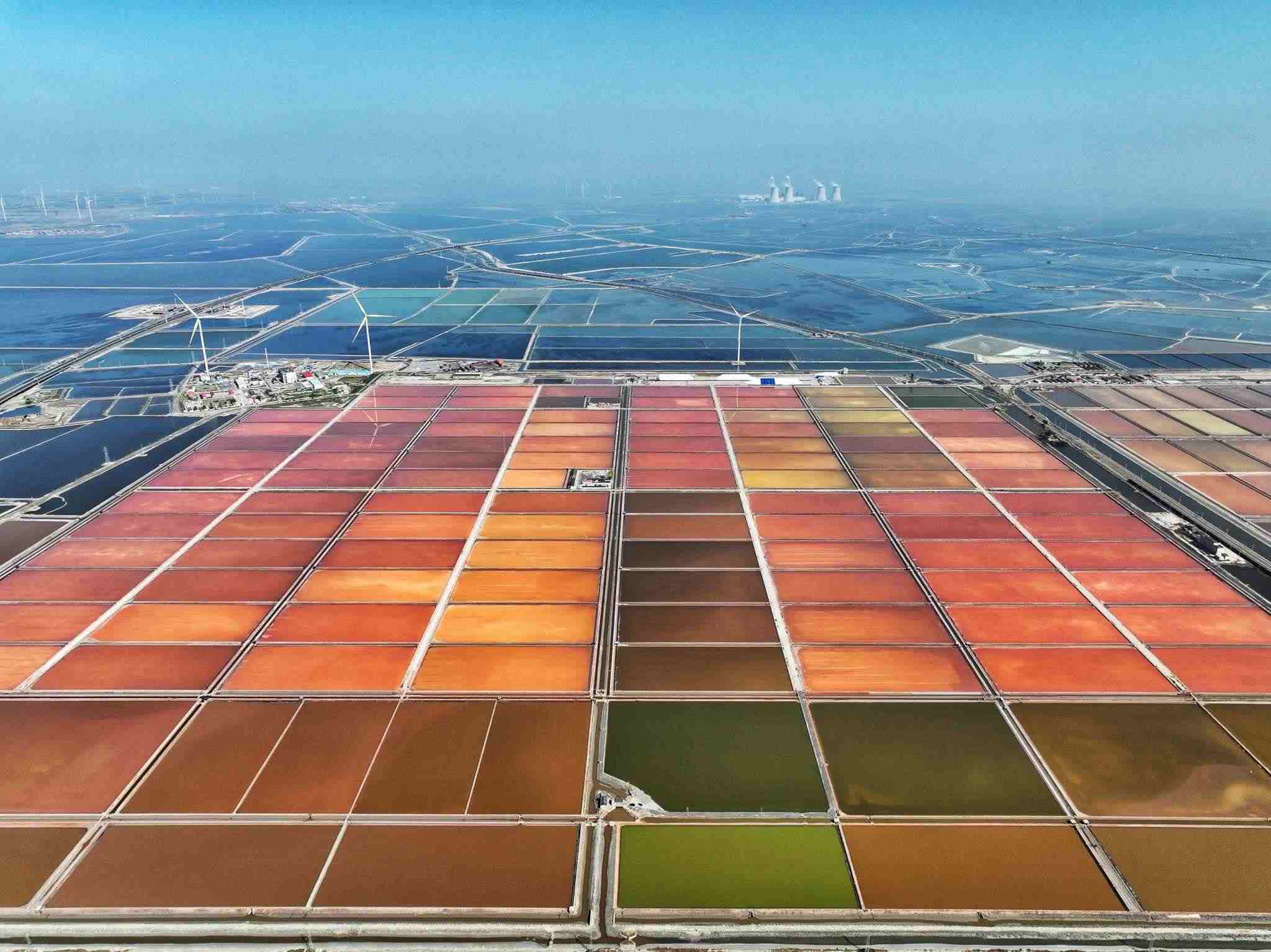 2023年5月22日,天津,位于渤海之濱的長蘆漢沽鹽場色塊分明,俯瞰如大地調色盤。視覺中國