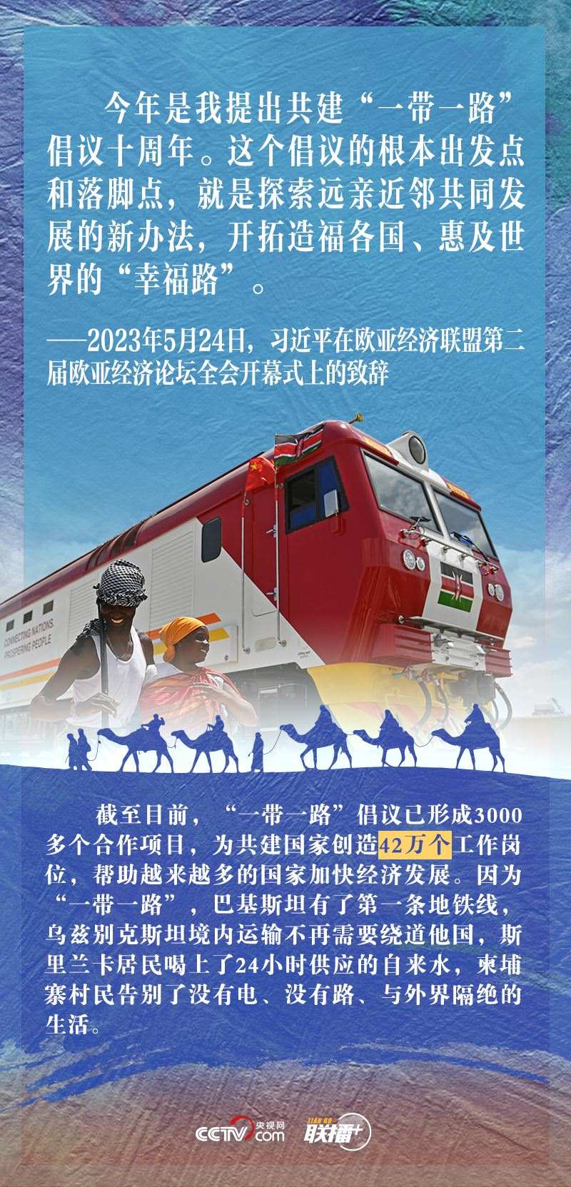 “今年是我提出共建‘一帶一路’倡議十周年。這個(gè)倡議的根本出發(fā)點(diǎn)和落腳點(diǎn),就是探索遠(yuǎn)親近鄰共同發(fā)展的新辦法,開(kāi)拓造福各國(guó)、惠及世界的‘幸福路’。”5月24日,習(xí)近平主席在出席歐亞經(jīng)濟(jì)聯(lián)盟第二屆歐亞經(jīng)濟(jì)論壇全會(huì)開(kāi)幕式并致辭時(shí)指出。