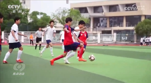 江西省贛州市定南縣第三中學(xué)學(xué)生曾子儒:“踢足球之前自己體弱多病,身體素質(zhì)比較差,別提去踢這么一場激烈的足球比賽,就是讓我圍著操場跑一圈都氣喘吁吁。”