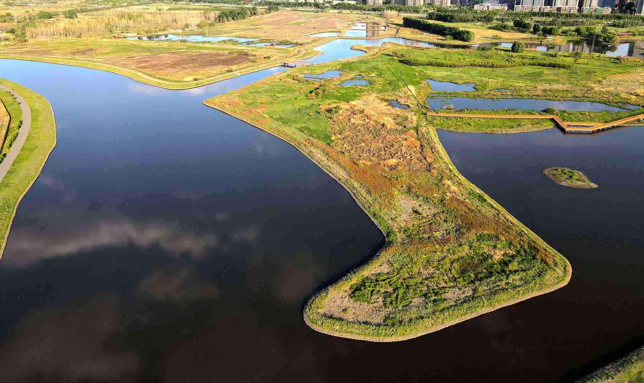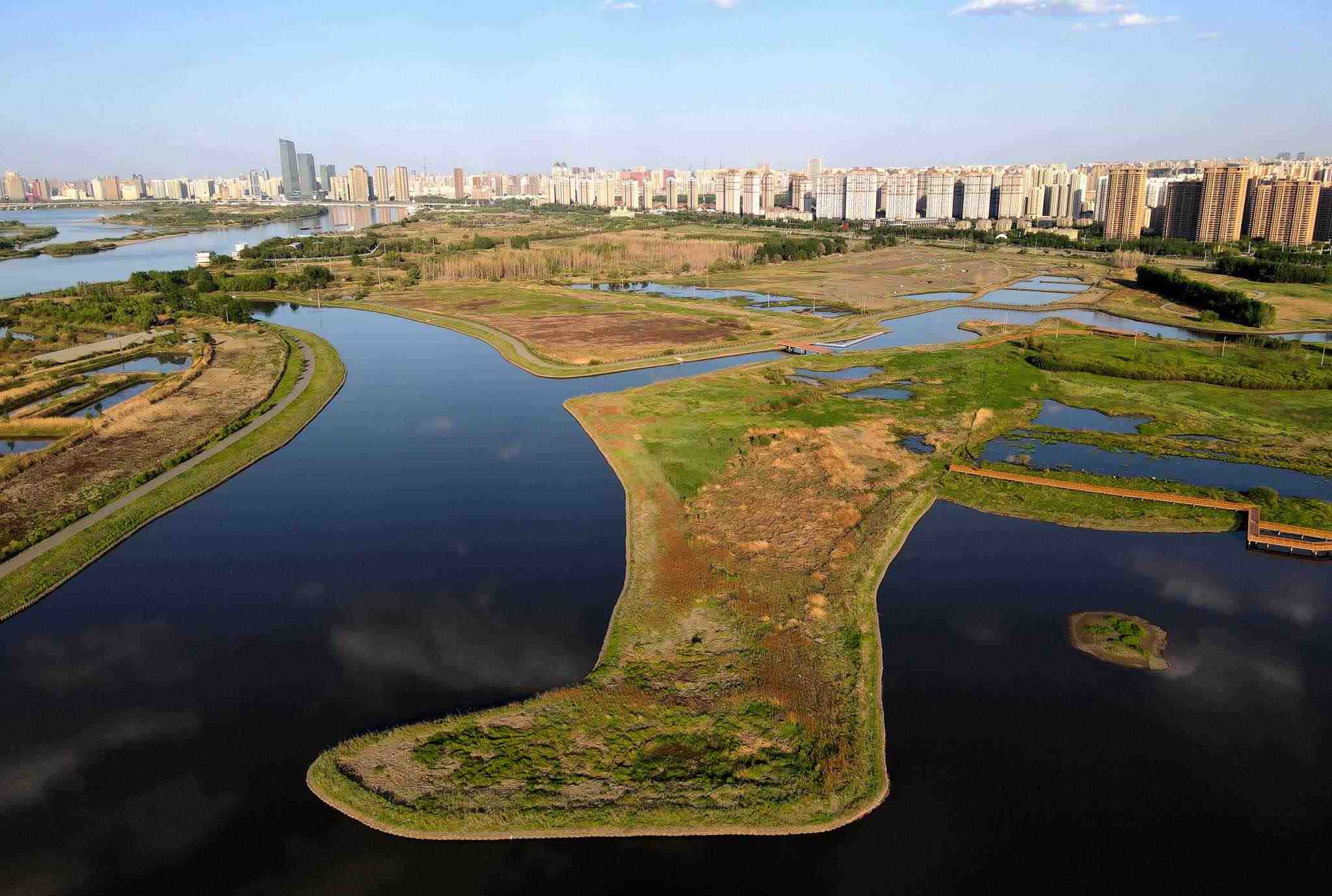 哈爾濱:“靴子”小島草木茂盛綠意盎然