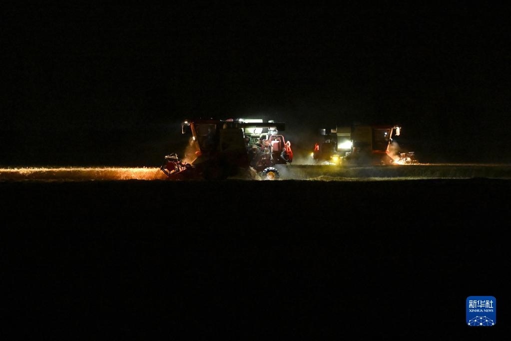 據(jù)氣象部門預(yù)報(bào),6月3日夜間至5日,夏糧主產(chǎn)省安徽將迎來一次降水過程。當(dāng)前正值安徽省小麥搶收關(guān)鍵時(shí)期,不少地方挑燈夜戰(zhàn)搶收小麥,力保小麥顆粒歸倉。記者從安徽省農(nóng)業(yè)農(nóng)村廳了解到,截至6月2日,安徽已收獲小麥面積1632.1萬畝,麥?zhǔn)者M(jìn)度為38%。新華社記者 趙金正 攝
