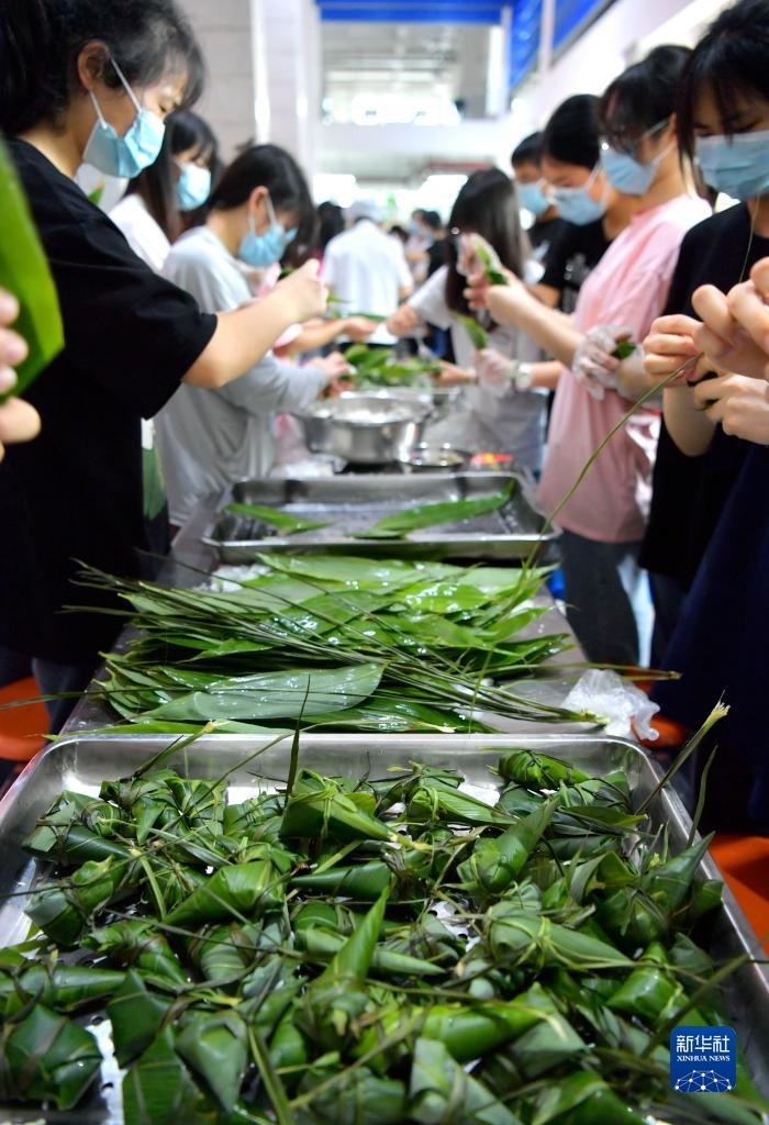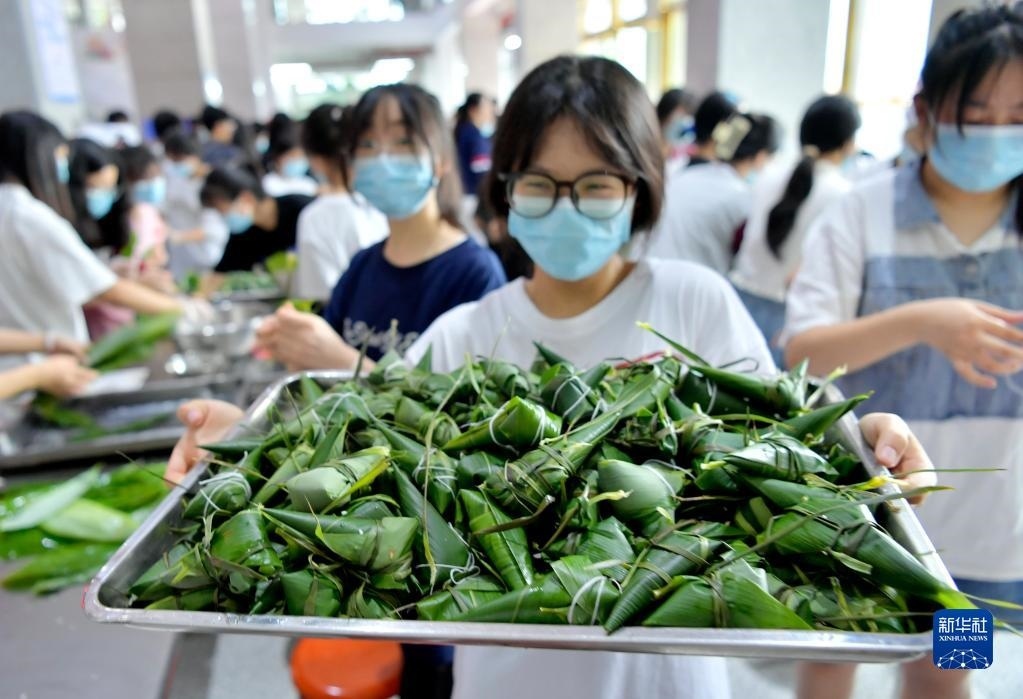 當(dāng)日,湖北省恩施土家族苗族自治州宣恩縣第一高級中學(xué)組織高三學(xué)生參加傳統(tǒng)手工包粽子比賽,讓即將踏入考場的學(xué)生在親自動手體驗(yàn)傳統(tǒng)文化的過程中舒緩心情、釋放壓力,以輕松的心態(tài)迎接高考。