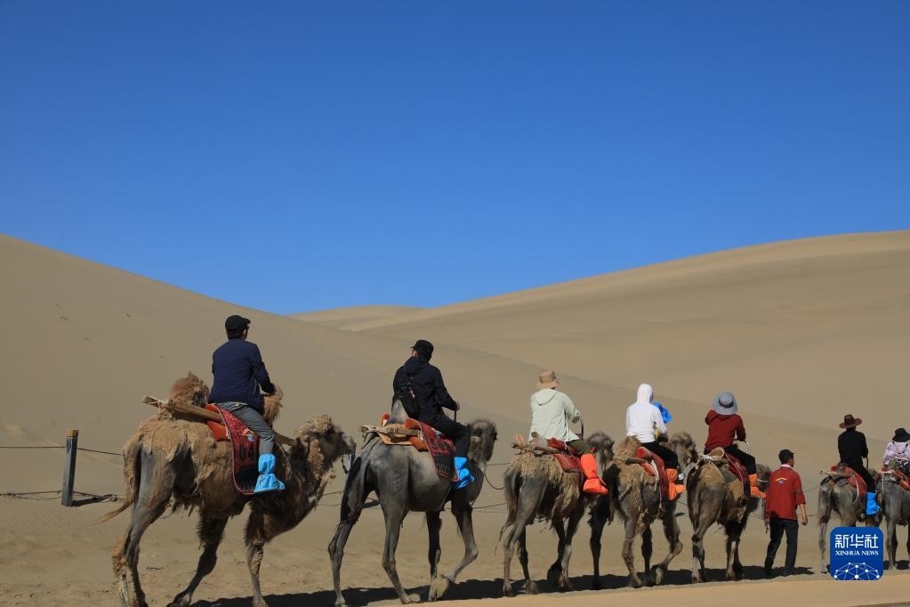 眼下正值甘肅省敦煌市旅游旺季,世界文化遺產(chǎn)莫高窟和沙漠奇觀鳴沙山月牙泉景區(qū)等地持續(xù)吸引游客前來參觀游覽。截至6月7日,敦煌市今年累計接待游客超135.5萬人次。新華社記者 張智敏 攝