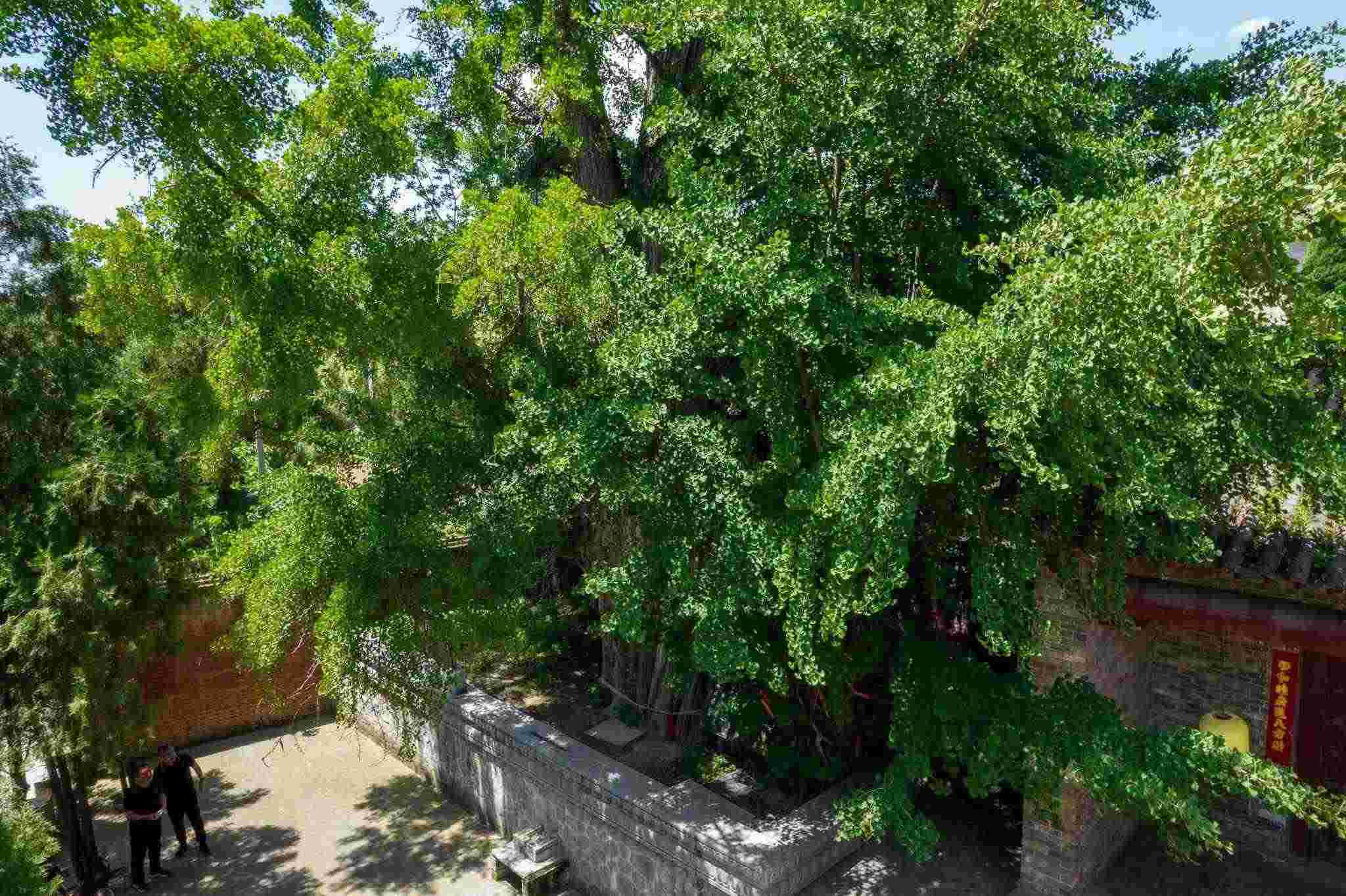 山西晉城:古村六千年銀杏樹樹冠碧綠