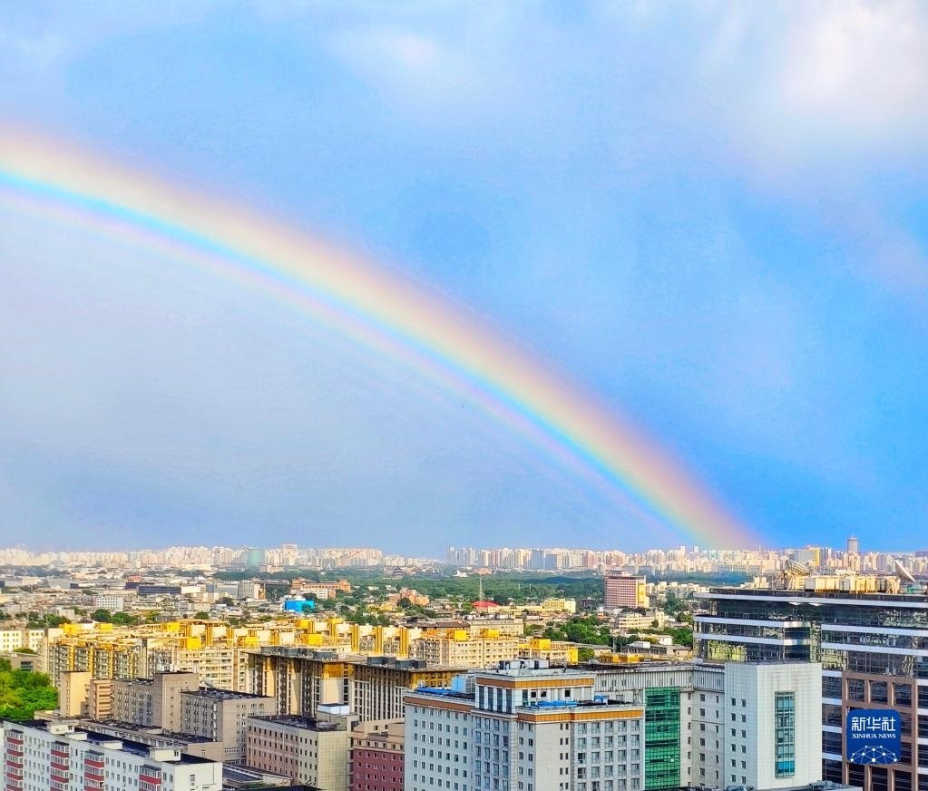 這是6月11日在北京宣武門附近拍攝的彩虹(手機(jī)照片)。