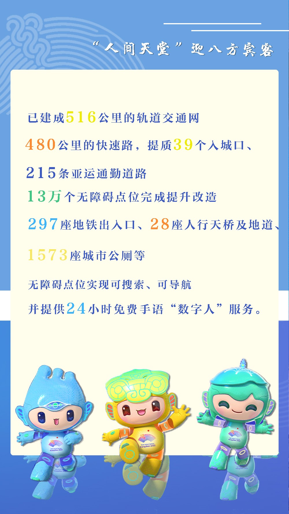 設(shè)置“1+4”抵離口岸,確定85家官方接待飯店,完成亞殘運(yùn)村727套無障礙客房和15大類無障礙設(shè)施的升級(jí)改造。