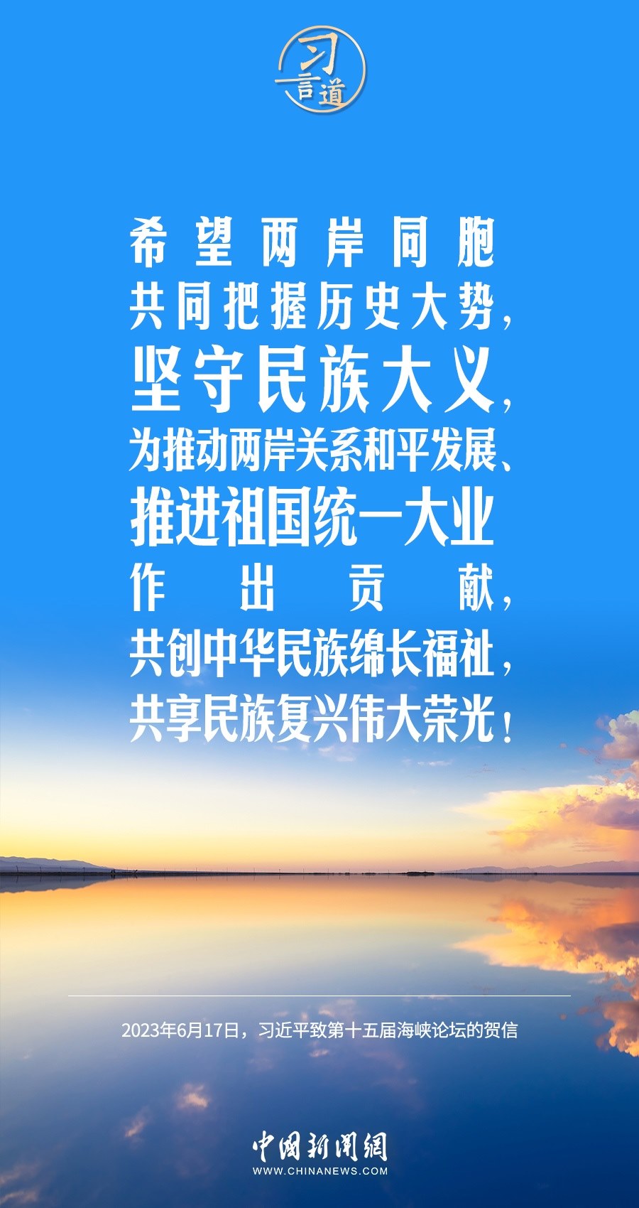 6月17日,中共中央總書記、國家主席習(xí)近平向第十五屆海峽論壇致賀信。習(xí)近平強(qiáng)調(diào)——