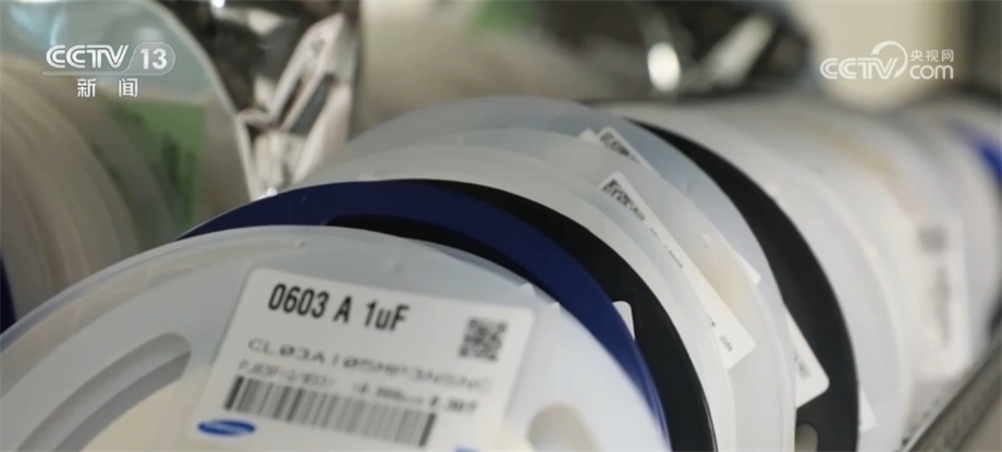 達豐(重慶)電腦有限公司資深經(jīng)理 劉洪亮:這就是我們即將要投到生產(chǎn)線上去生產(chǎn)的材料,因為它是SMT工藝流程的貼片技術(shù),所以它的材料都是成卷包裝的。這一卷,你看這個數(shù)量,4000個,這個更夸張,一卷1萬個。