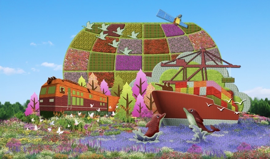 7,西單東南角的“幸福之路”花壇頂高9米,以中歐班列、貨輪以及海豚為主景,寓意共同把“一帶一路”這條造福世界的幸福之路鋪得更寬更遠。