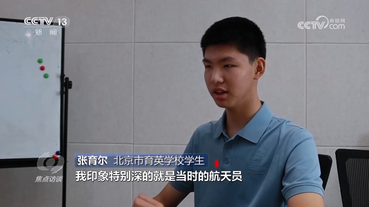 北京市育英學(xué)校學(xué)生張育爾:“我印象特別深的是當(dāng)時航天員拿針筒把氣泡注射到水里,然后形成了一個類似于放大鏡的視覺效果,看到這個感覺很新鮮、很科幻,一開始是好奇心驅(qū)動了,后來就開始了解這方面的東西。”
