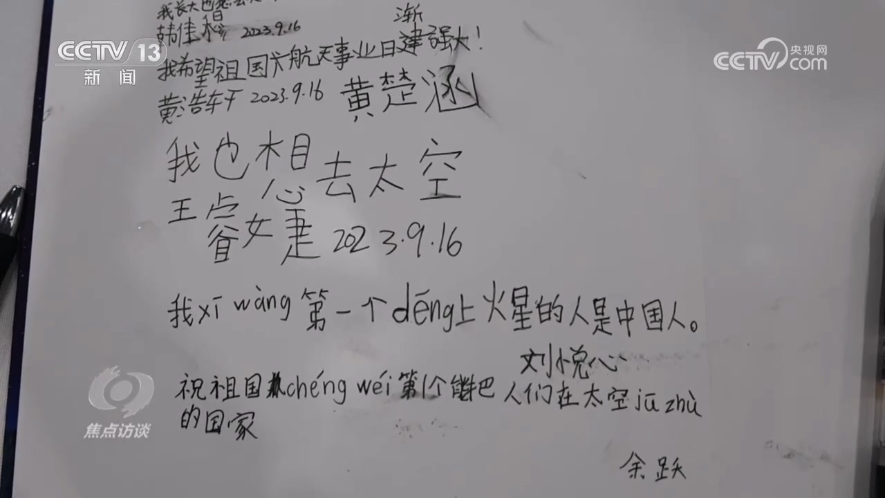 小學(xué)生肖品儀:“我們坐上艙下去有失去重心的感覺,挺驚險的,航天員勇敢上去,又安安全全返回來,確實(shí)挺勇敢的。”