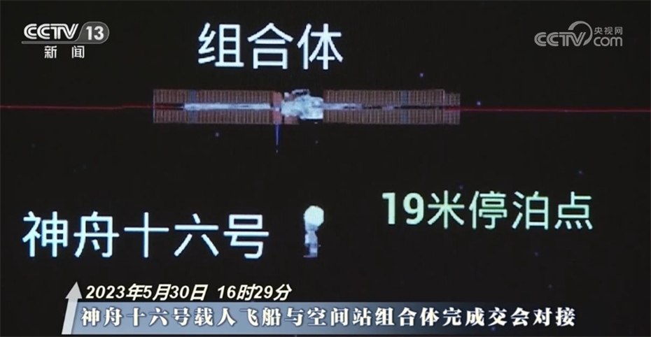 2023年5月30日16時(shí)29分 神舟十六號(hào)載人飛船與空間站組合體完成交會(huì)對(duì)接