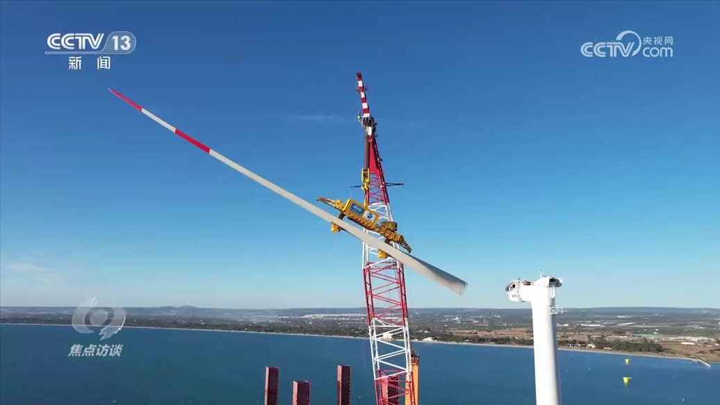 明陽(yáng)集團(tuán)黨委書記、董事長(zhǎng)張傳衛(wèi):“18兆瓦的風(fēng)機(jī)葉輪直徑可以達(dá)到290米,它轉(zhuǎn)一圈就可以發(fā)到60度電,一年下來(lái)可以發(fā)1億度電,覆蓋10萬(wàn)個(gè)家庭用電,減少7萬(wàn)噸的二氧化碳排放?!?/p>