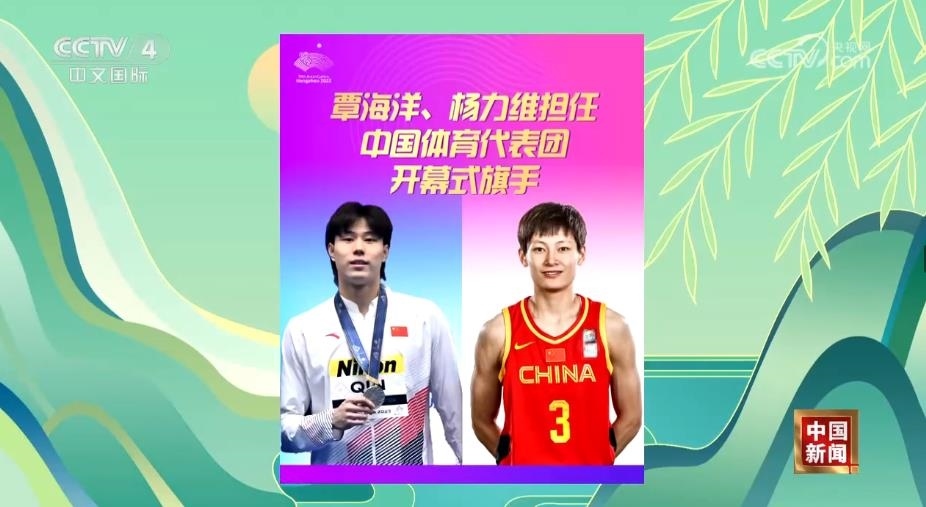 9月22日上午,杭州亞運(yùn)會中國體育代表團(tuán)宣布,將由游泳運(yùn)動員覃海洋和籃球運(yùn)動員楊力維擔(dān)任杭州亞運(yùn)會開幕式中國體育代表團(tuán)旗手。楊力維作為中國女籃隊(duì)長,2023年與隊(duì)友一起贏得了亞洲杯冠軍。覃海洋2023年在世錦賽上收獲4金,其中,包攬了男子蛙泳的3枚金牌,并打破一項(xiàng)世界紀(jì)錄。
