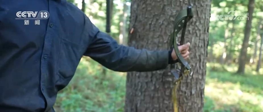 紅松樹長(zhǎng)到15年的時(shí)候開始結(jié)果,可以持續(xù)結(jié)果到百年以上。要在高大筆直的樹干上自由攀爬,除了需要敏捷的身手和豐富的經(jīng)驗(yàn)之外,還需要借助一些工具。
