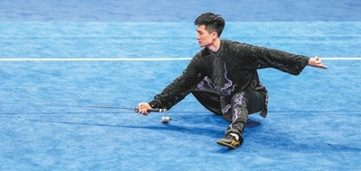 9月25日,武術(shù)男子太極拳太極劍全能決賽,中國體育代表團(tuán)選手高浩楠在比賽中。記者 厲衍飛攝