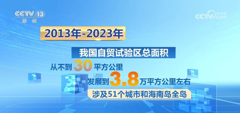 十年間,我國自貿(mào)試驗區(qū)的總面積從不到30平方公里發(fā)展到3.8萬平方公里左右,涉及51個城市和海南島全島。今年上半年,我國自貿(mào)試驗區(qū)以不到千分之四的國土面積,實現(xiàn)了占全國18.4%的外商投資和18.6%的進(jìn)出口總額,帶動全國形成了覆蓋東西南北中、統(tǒng)籌沿海內(nèi)陸沿邊的改革開放創(chuàng)新格局。