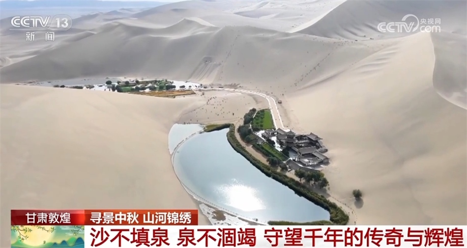 風卷飛沙,月牙泉水卻始終碧波蕩漾,這里是甘肅敦煌。沙不填泉,泉不涸竭,鳴沙山與月牙泉就這樣守望千年,也吸引著世界各地的人們前來領略瀚海風光。今年中秋和國慶假期,景區(qū)游客數量預計突破20萬人次。古道駝鈴,沙漠綠洲,風聲、水聲伴著沙丘移動的聲音,千百年來,大自然一直在用最恢弘的方式訴說著一個天地之間的傳奇與輝煌。