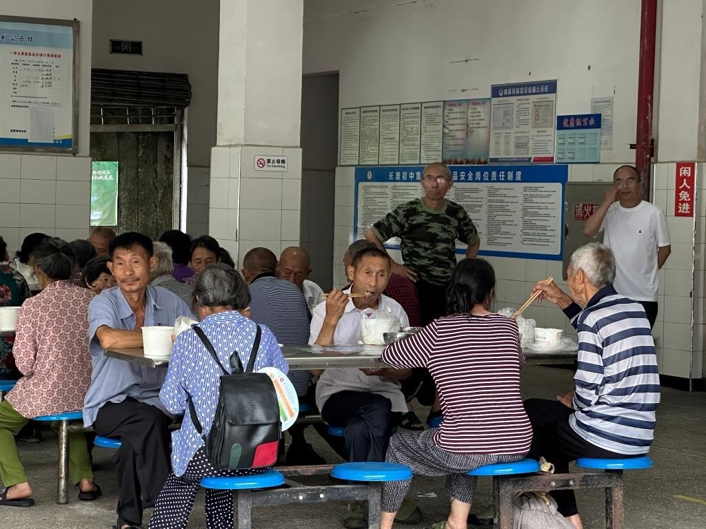 長灘初級中學(xué)安置點群眾正在用午飯。新華社記者李曉婷 攝