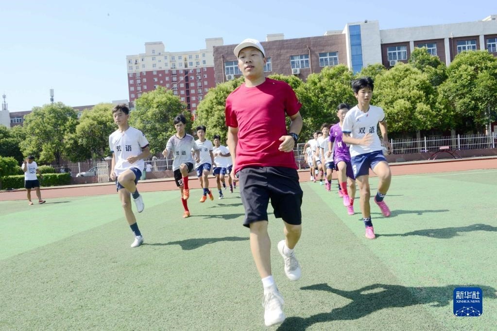 7月7日,在河南省焦作市武陟縣一家體育培訓機構(gòu),教練指導學生練習跑步。