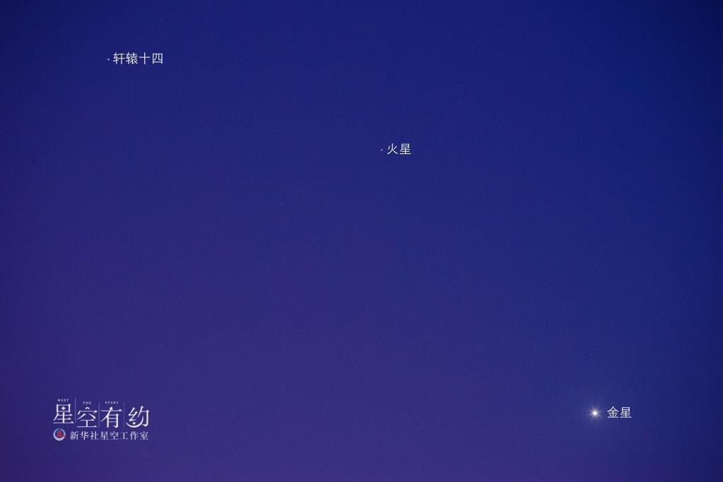 本次相合,火星與軒轅十四最近時(shí)僅有0.7度,就比一個(gè)滿月視直徑(約為0.5度)大一點(diǎn),不過受日光影響,無法看到它們相距最近時(shí)的情景。好在當(dāng)天20時(shí)左右,兩星近距離爭(zhēng)輝的場(chǎng)景在漸黑的暮色中依然會(huì)呈現(xiàn),感興趣的公眾可以嘗試觀測(cè)。