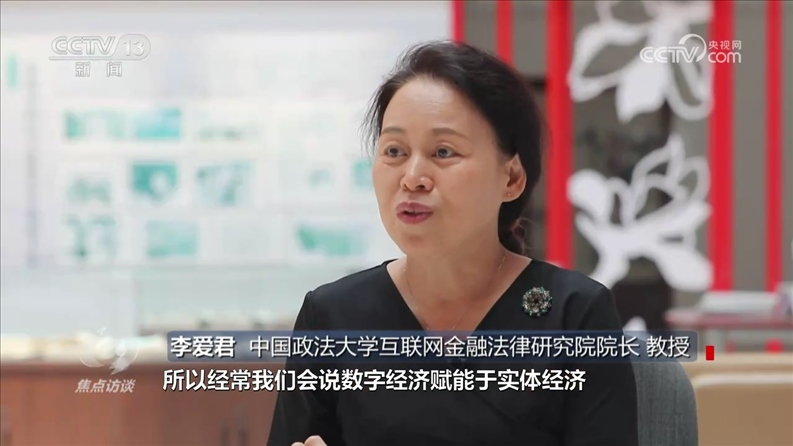 中國(guó)政法大學(xué)互聯(lián)網(wǎng)金融法律研究院院長(zhǎng)、教授李愛(ài)君:“數(shù)字經(jīng)濟(jì)主要包括三個(gè)要素,第一個(gè)要素是以數(shù)據(jù)為生產(chǎn)要素;第二個(gè)是以互聯(lián)網(wǎng)為載體;第三個(gè)是現(xiàn)代信息技術(shù)。在數(shù)字經(jīng)濟(jì)時(shí)代,我們有自己的優(yōu)勢(shì),大的市場(chǎng)優(yōu)勢(shì),有10億網(wǎng)民,我們有數(shù)據(jù)量的優(yōu)勢(shì),數(shù)據(jù)量的優(yōu)勢(shì)恰恰是數(shù)字經(jīng)濟(jì)時(shí)代重要的生產(chǎn)要素,沒(méi)有數(shù)據(jù)就不可能有智能,那么一定要抓住這樣的時(shí)代機(jī)會(huì),增加我們的核心競(jìng)爭(zhēng)力。”