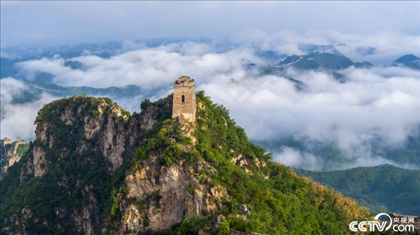 2023年7月14日清晨,北京密云,司馬臺長城雨后現(xiàn)云海景觀。