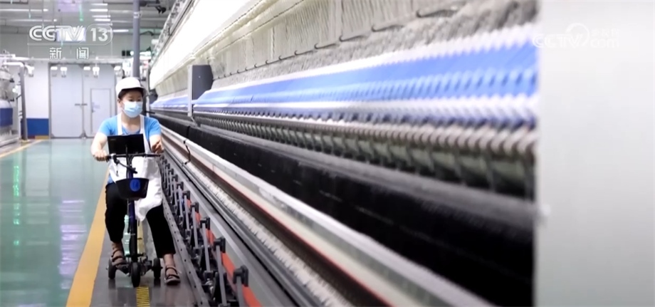 總臺(tái)央視記者 鄭怡哲:用于服裝的精梳棉紗,從棉花種植、軋花到加工成粗紗、細(xì)紗,再到成品運(yùn)輸、入庫(kù),全流程下來,1千克棉紗的碳足跡值僅為4公斤左右的二氧化碳。在這條直徑不到0.1mm的紗線上,要滿足強(qiáng)度、透氣、舒適性等指標(biāo),同時(shí)也要兼顧節(jié)能、環(huán)保和碳排放。要在這條細(xì)細(xì)的紗線上做出如此大的文章,離不開企業(yè)的高質(zhì)量發(fā)展和科技的支持。