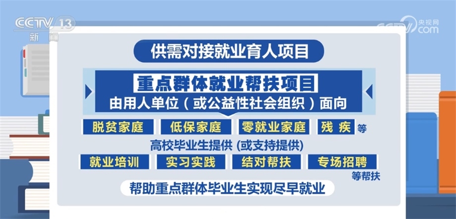 重點(diǎn)群體就業(yè)幫扶項(xiàng)目由用人單位(或公益性社會組織)面向脫貧家庭、低保家庭、零就業(yè)家庭、殘疾等高校畢業(yè)生提供(或支持提供)就業(yè)培訓(xùn)、實(shí)習(xí)實(shí)踐、結(jié)對幫扶、專場招聘等幫扶,幫助重點(diǎn)群體畢業(yè)生實(shí)現(xiàn)盡早就業(yè)。