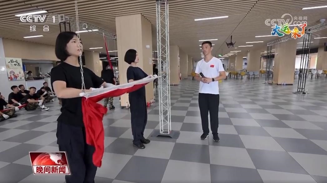 大運(yùn)會(huì)頒獎(jiǎng)儀式升旗手總教官 盛東龍:目的就是希望通過(guò)這么一場(chǎng)神圣而莊嚴(yán)的升旗儀式來(lái)感染他們,來(lái)激發(fā)和增強(qiáng)他們的愛(ài)國(guó)情懷,包括他們的使命擔(dān)當(dāng)。