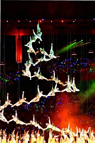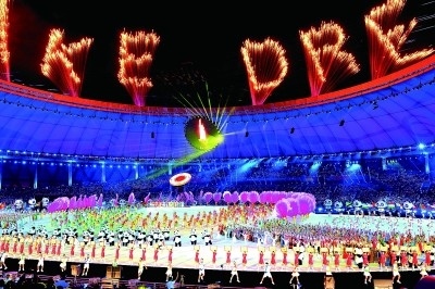成都大運(yùn)會(huì)開幕式現(xiàn)場的文藝演出。本報(bào)記者 郭俊鋒攝/光明圖片