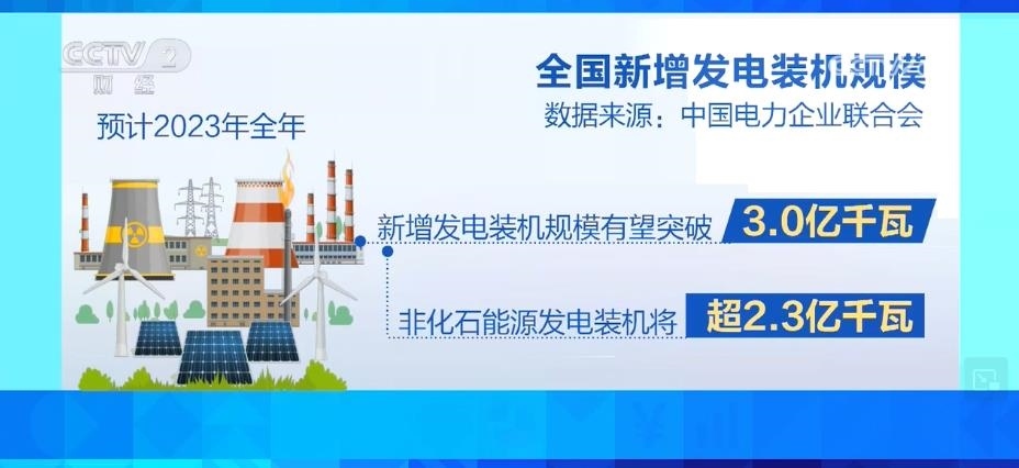 據(jù)預(yù)計,2023年全年,全國新增發(fā)電裝機規(guī)模有望突破3.0億千瓦,其中,非化石能源發(fā)電裝機將超過2.3億千瓦。到2023年底,全國發(fā)電裝機容量預(yù)計將達到28.6億千瓦,同比增長11.5%左右。其中,并網(wǎng)風電和太陽能發(fā)電合計裝機容量將達到9.6億千瓦,占總裝機的三分之一。