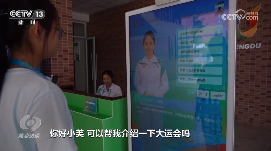 本屆大運(yùn)會(huì)的虛擬志愿者小芙,通過先進(jìn)的語音合成、AI口唇表情驅(qū)動(dòng)、圖像處理等技術(shù),能夠使用普通話、四川話和英文,和攝像頭識(shí)別出的對(duì)象進(jìn)行“面對(duì)面”的直接交流。這套系統(tǒng)的研發(fā)者之一雷曉輝是一名“90后”工程師。