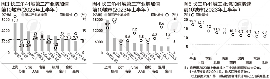 第一財(cái)經(jīng)記者梳理公開數(shù)據(jù)發(fā)現(xiàn),長(zhǎng)三角41城中,共有8個(gè)城市的上半年GDP超5000億元,6市增速達(dá)到或超過(guò)8%。
