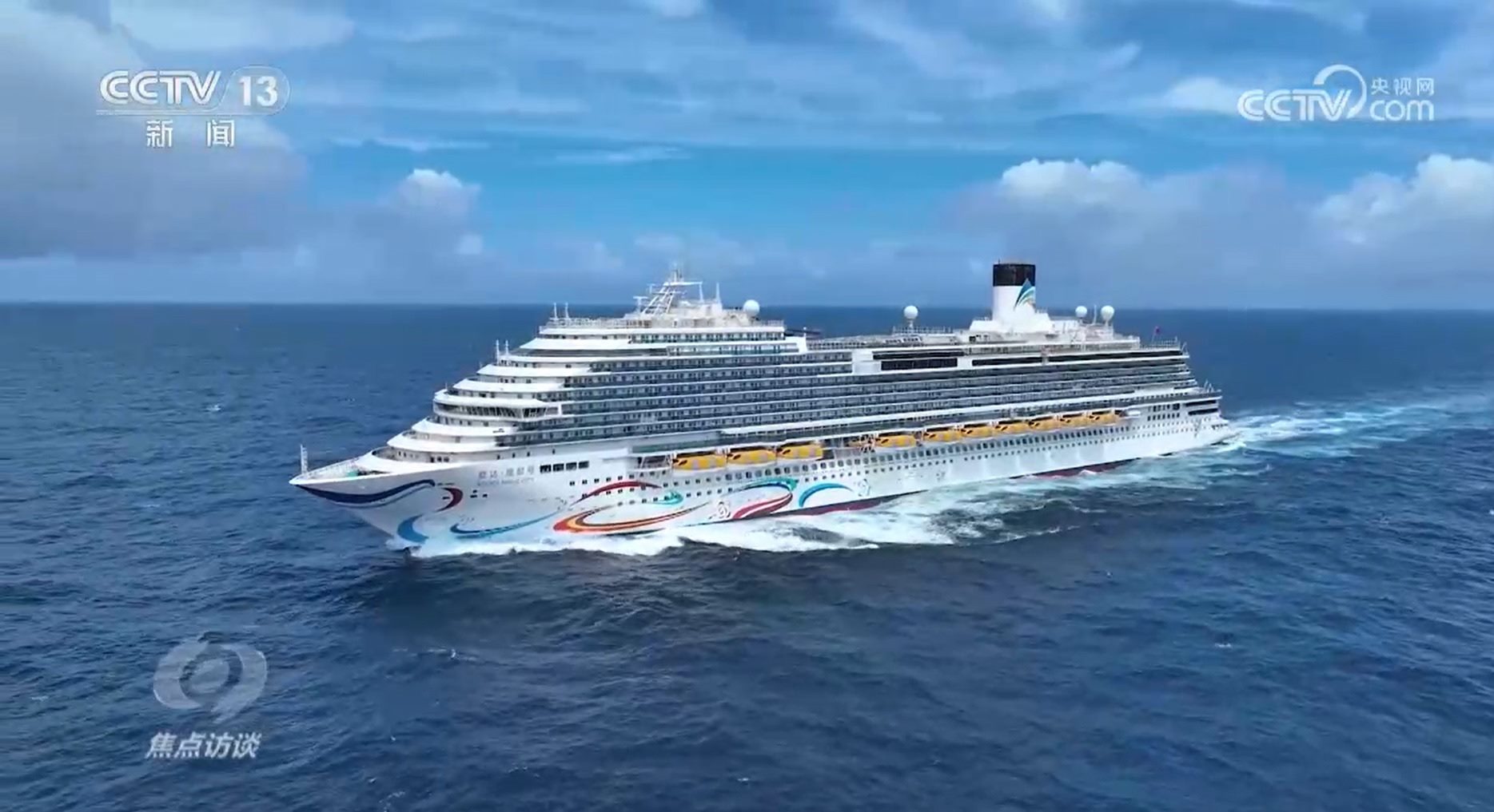 央視網(wǎng)消息(焦點訪談):一艘名叫“愛達·魔都號”的巨輪,是我國自主建造的首艘大型郵輪,它于7月24日完成了首次海上試航,??吭谏虾M飧邩虼a頭,預(yù)計今年三季度還將開展第二次試航。大型郵輪的建造是一個國家裝備建造能力和綜合科技水平的集中展現(xiàn)。今天的節(jié)目,我們先跟著這艘巨輪,去感受一下我國船舶工業(yè)最新的脈動。