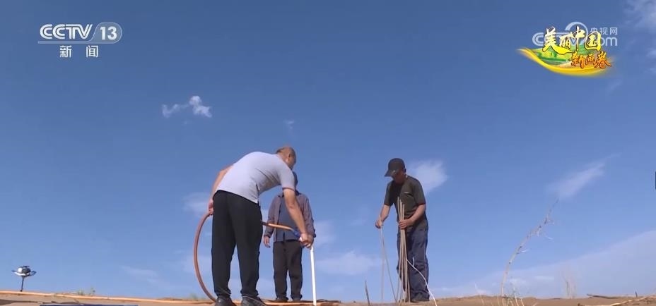 但個(gè)性倔強(qiáng)的田旺,骨子里有一股不服輸?shù)膭蓬^。他暗暗下定決心,一定要留下來,還要干出一番名堂。他虛心向老一輩治沙人學(xué)習(xí),鍛煉自己適應(yīng)沙漠的生活和工作。很快,田旺不僅適應(yīng)了沙漠環(huán)境,而且還不斷努力鉆研新的治沙技術(shù)。在沙丘上,田旺給我們展示了現(xiàn)在效率和成活率最高的氣流植樹法。
