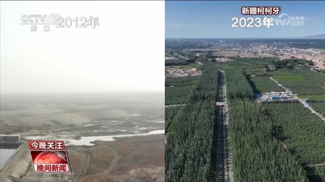 新疆阿克蘇地區(qū)的柯柯牙曾經(jīng)是南疆風(fēng)沙策源地之一。30年來,面對(duì)柯柯牙缺水和土壤鹽堿含量高的情況,當(dāng)?shù)叵到y(tǒng)推進(jìn)山水林田湖草沙一體化保護(hù)和系統(tǒng)治理,柯柯牙綠化工程造林共計(jì)120.26萬(wàn)畝,累計(jì)栽植樹木1400萬(wàn)株,荒漠變?yōu)榱趾#罱K在貧瘠的戈壁荒漠中,造就了一道“綠色長(zhǎng)城”。
