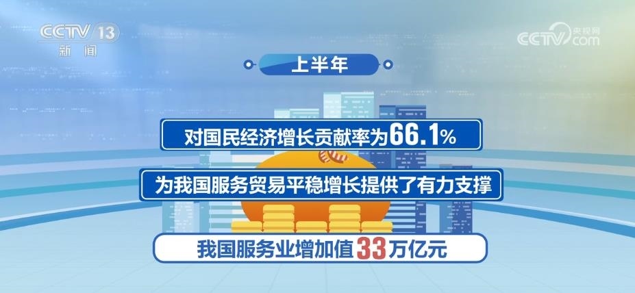 2023年以來,國民經(jīng)濟持續(xù)穩(wěn)定恢復,服務業(yè)保持較快增長。上半年,我國服務業(yè)增加值33萬億元,同比增長6.4%,占GDP比重為56%,高于上年同期1.6個百分點,對國民經(jīng)濟增長貢獻率為66.1%,為我國服務貿(mào)易平穩(wěn)增長提供了有力支撐。