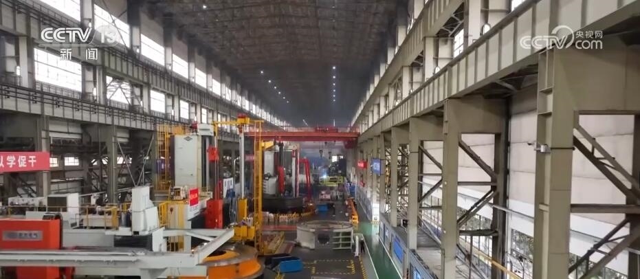 總臺(tái)記者 蔣林:我現(xiàn)在就是在位于四川德陽(yáng)的東方電機(jī)的生產(chǎn)車間,這里也是目前中國(guó)最為重要的能源裝備的制造基地?,F(xiàn)在一天全國(guó)所發(fā)的電量里面,每4度有1度就來(lái)自于這里的設(shè)備。而且根據(jù)我們掌握的最新的生產(chǎn)數(shù)據(jù),也能夠感覺(jué)到目前中國(guó)能源發(fā)展的新趨勢(shì)。截止到2023年的6月底,在過(guò)去一年當(dāng)中,這里所生產(chǎn)的設(shè)備里有90%都是清潔能源的設(shè)備。比如,我身旁的這個(gè)大家伙,它是華龍一號(hào)發(fā)電機(jī)組的轉(zhuǎn)軸,而像這樣的大塊頭在這個(gè)廠房里面比比皆是。