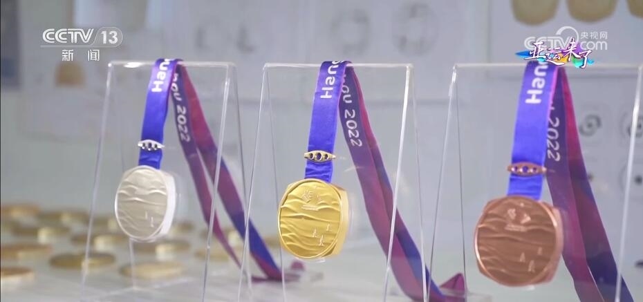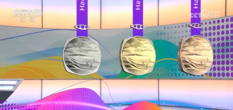 杭州亞運會獎牌名為“湖山”?!昂健睂⒘间疚幕姆叫斡耒蛨A形的獎章融為一體,正面用凸出的線條勾勒出“三面云山一面城”的杭城畫卷,湖水漣漪,山巒起伏。獎牌上方的束扣是一個帶有倒影的三孔橋,設計取自京杭大運河最南端的拱宸橋。一塊獎牌,將杭州的三處世界文化遺產(chǎn):良渚、西湖、大運河都融入其中。