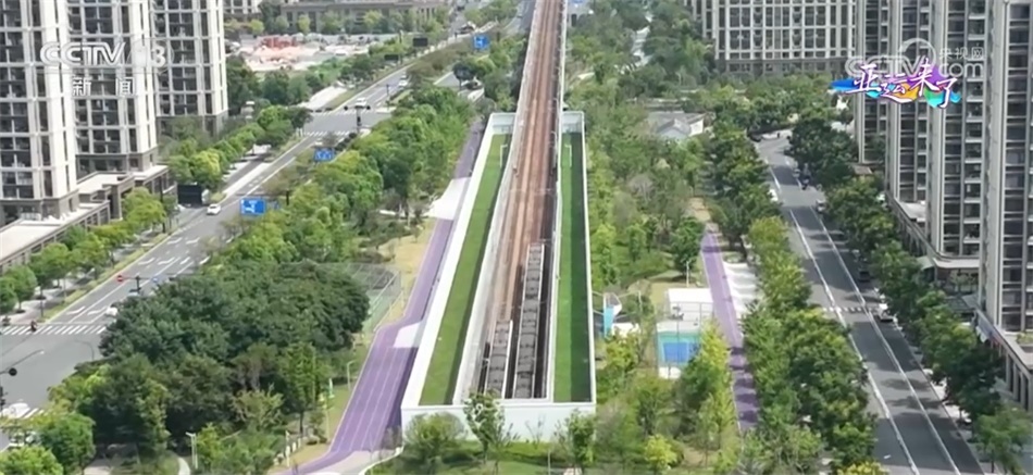 來到杭州臨平區(qū)的豐彩運動公園,公園形似一個“彩虹大吉他”,穿梭其間的地鐵宛若“琴弦”撥動。